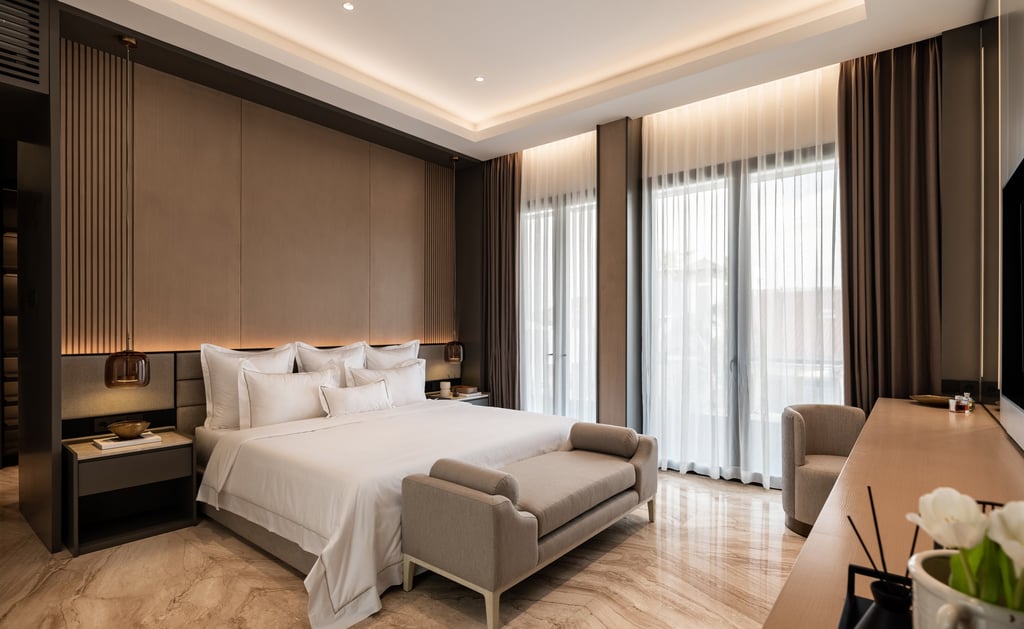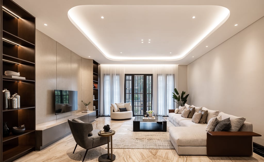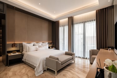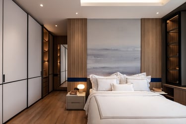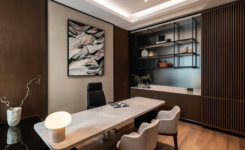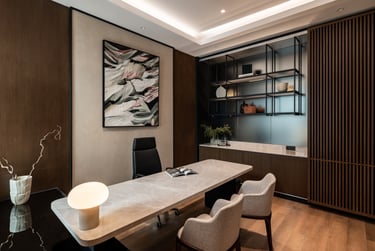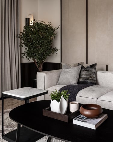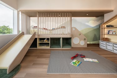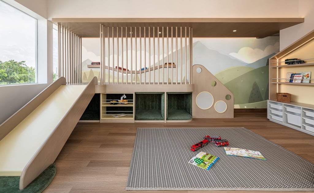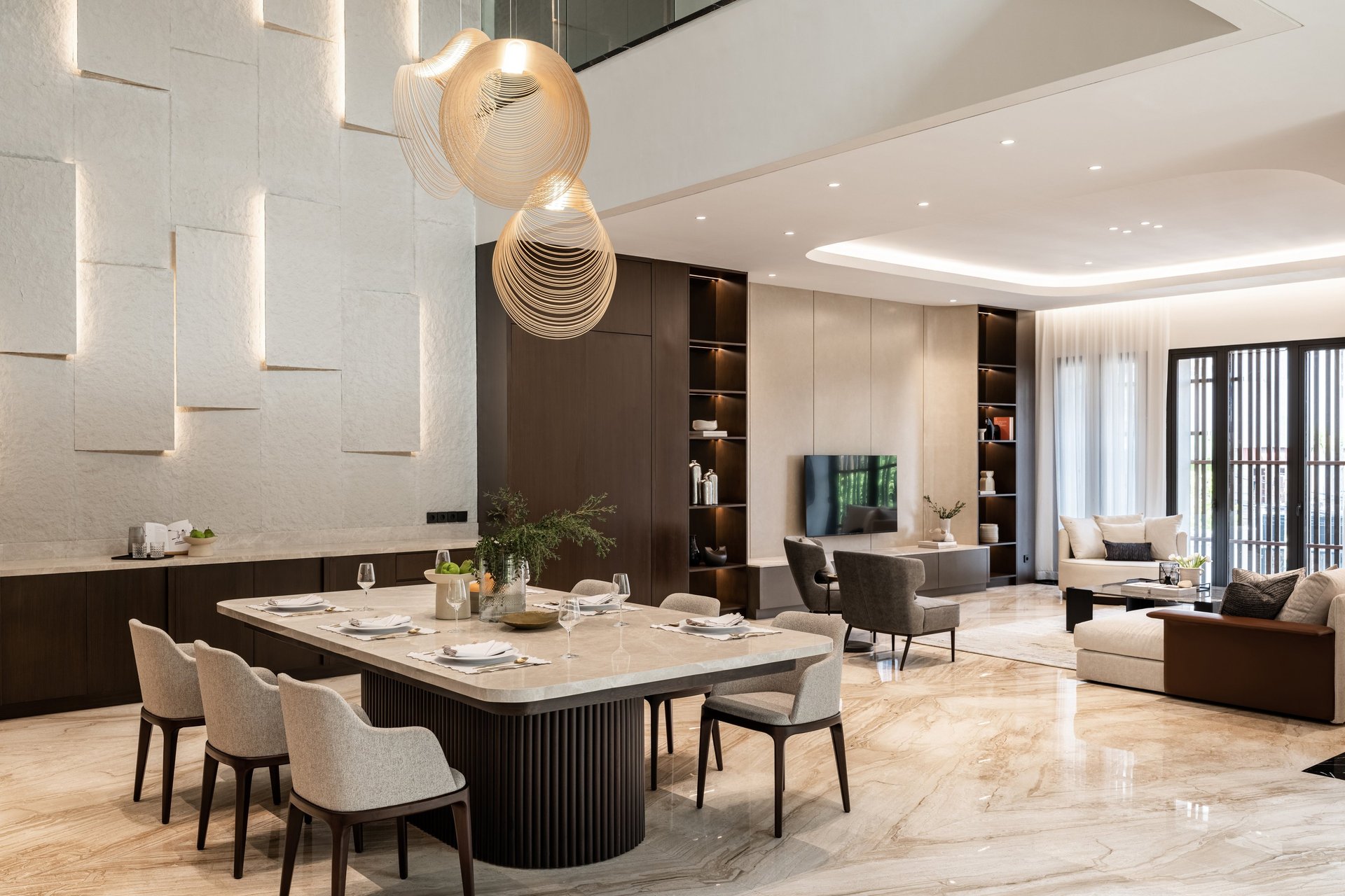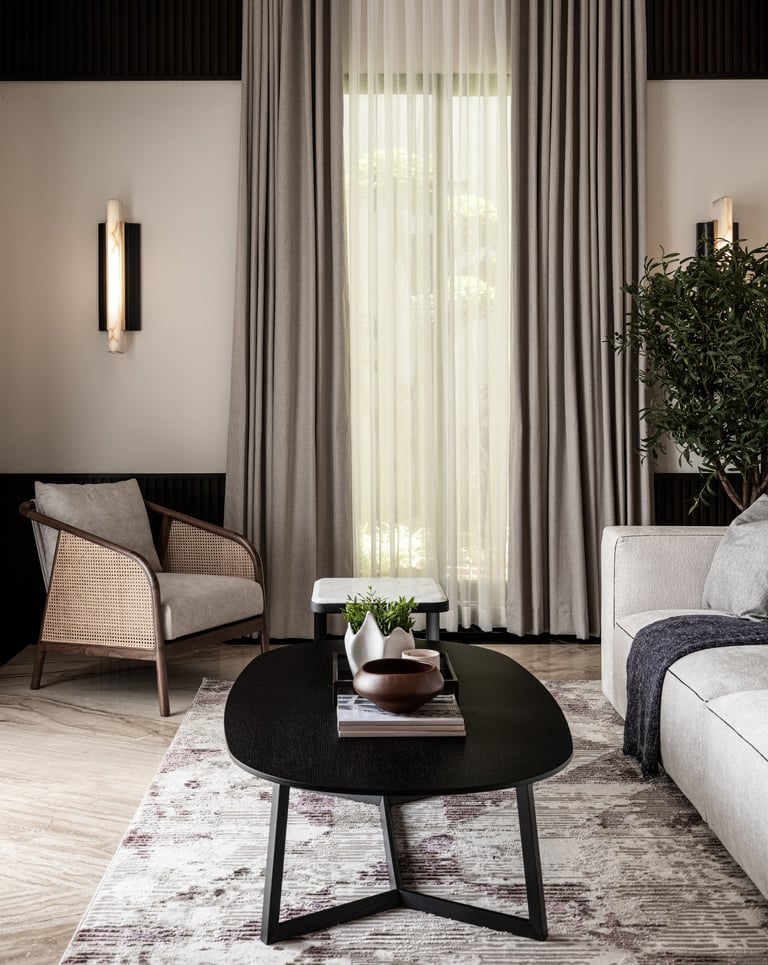 A refined blend of tropical warmth and contemporary luxury, this home balances deep walnut tones with softly veined light stone to create rich visual contrast. Layered textures, thoughtful material depth, and clean modern lines bring a sense of quiet sophistication. Designed for a growing family, the space integrates a kids’ room and playroom with seamless flow, ensuring beauty, comfort, and long-term adaptability.